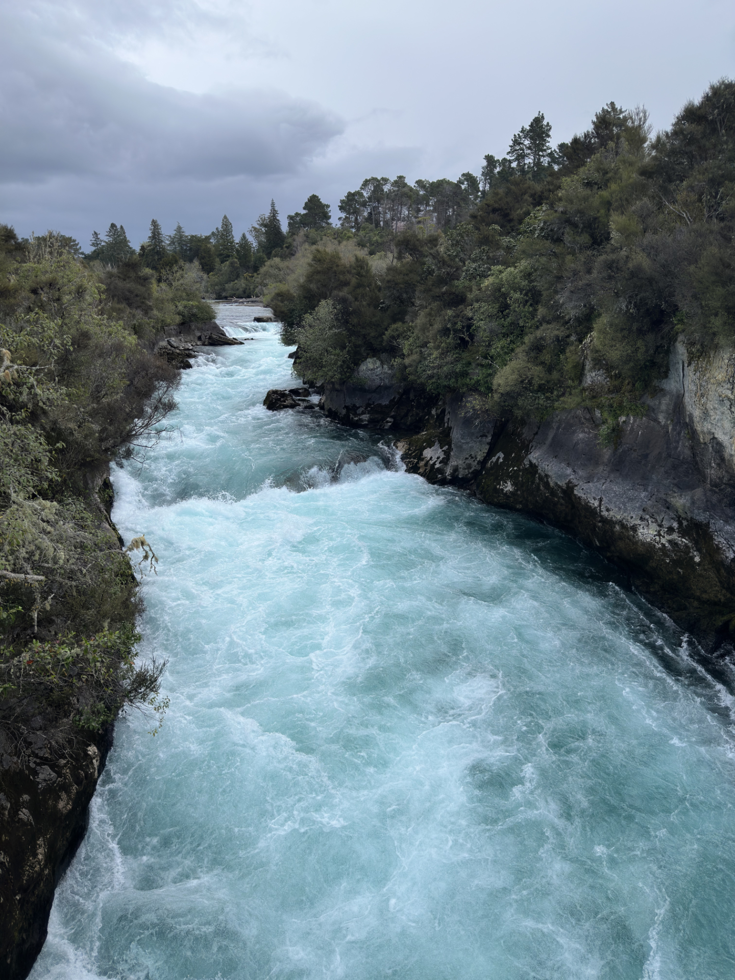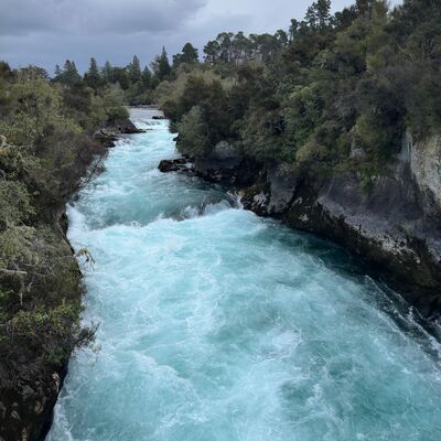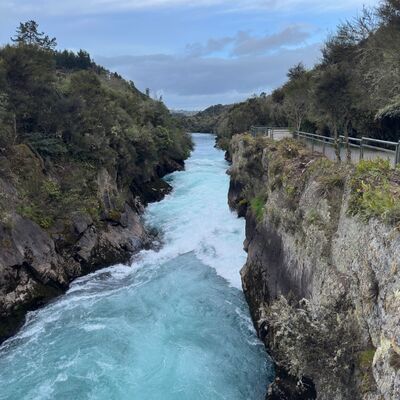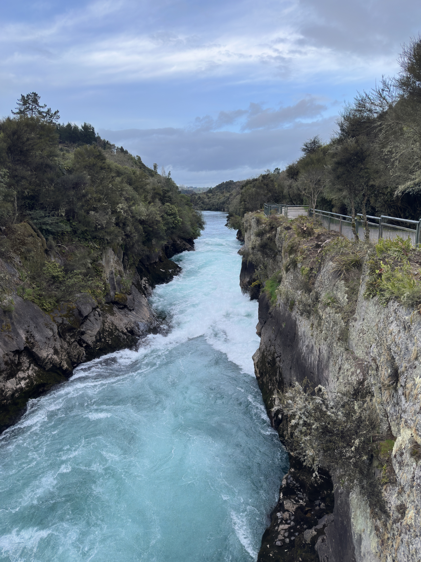Danach mache ich mich auf den Weg zu den Huka Falls, Wasserfälle des Waikato River, die von Lake Taupo abfliessen.