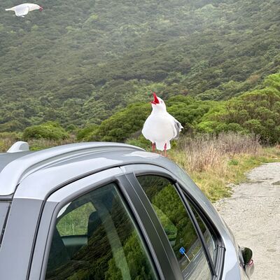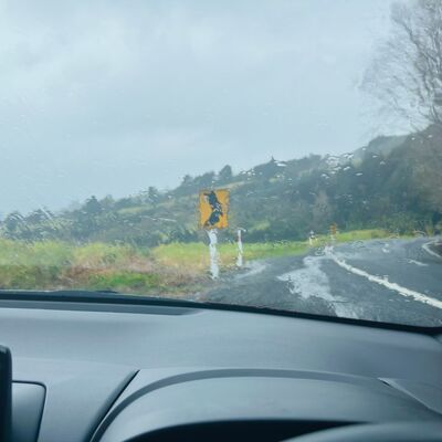 Meine Tour beginnt um 15 Uhr, also noch genügend Zeit, Flora und Fauna kennen zu lernen. Nördlich von Thames gibt es den Coromandel Forest Park, deshalb ab ins Auto. Es schüttete mittlerweile, aber die Strasse war wirklich gut, Edvard - ich nenn mein Auto nun so, weil siehe 22.09. - haftet gut und gleitet durch die Kurven wie auf Schienen. Die Assistenzsysteme laufen vermutlich deshalb im roten Bereich. Etwas verwirrt stelle ich fest, dass Maximalgeschwindigkeit 100 km/h ist. Auf kurvigen Landstrassen. In der Schweiz wären bei einigen Stellen 50 km/h sogar umstritten.