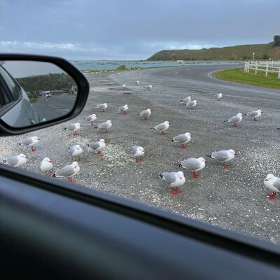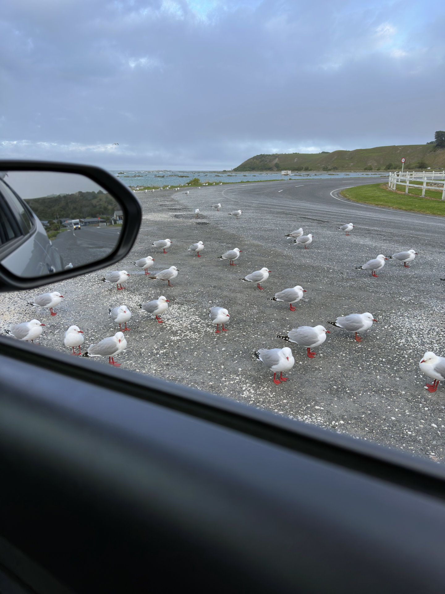 Linksverkehr ist anfangs gewöhnungsbedürftig, was spannend ist, wenn man gleich am ersten Tag mitten in die grösste Stadt Neuseelands fahren muss. Ich fahre zunächst einfach mal einem hinterher in der Hoffnung, dass wir das selbe Ziel haben. Haben wir nicht. Ein weiteres Problem ist, dass ich statt Blinken die Scheiben wische. Auch gut, kann nie schaden. Hoffe aber auf Regen, damit es weniger dumm aussieht.