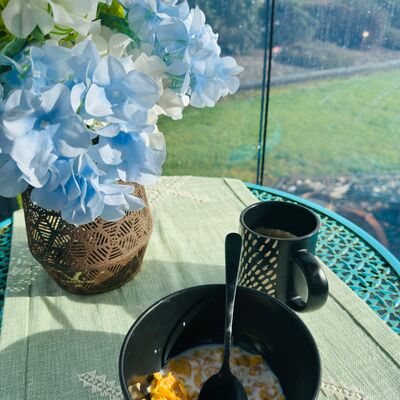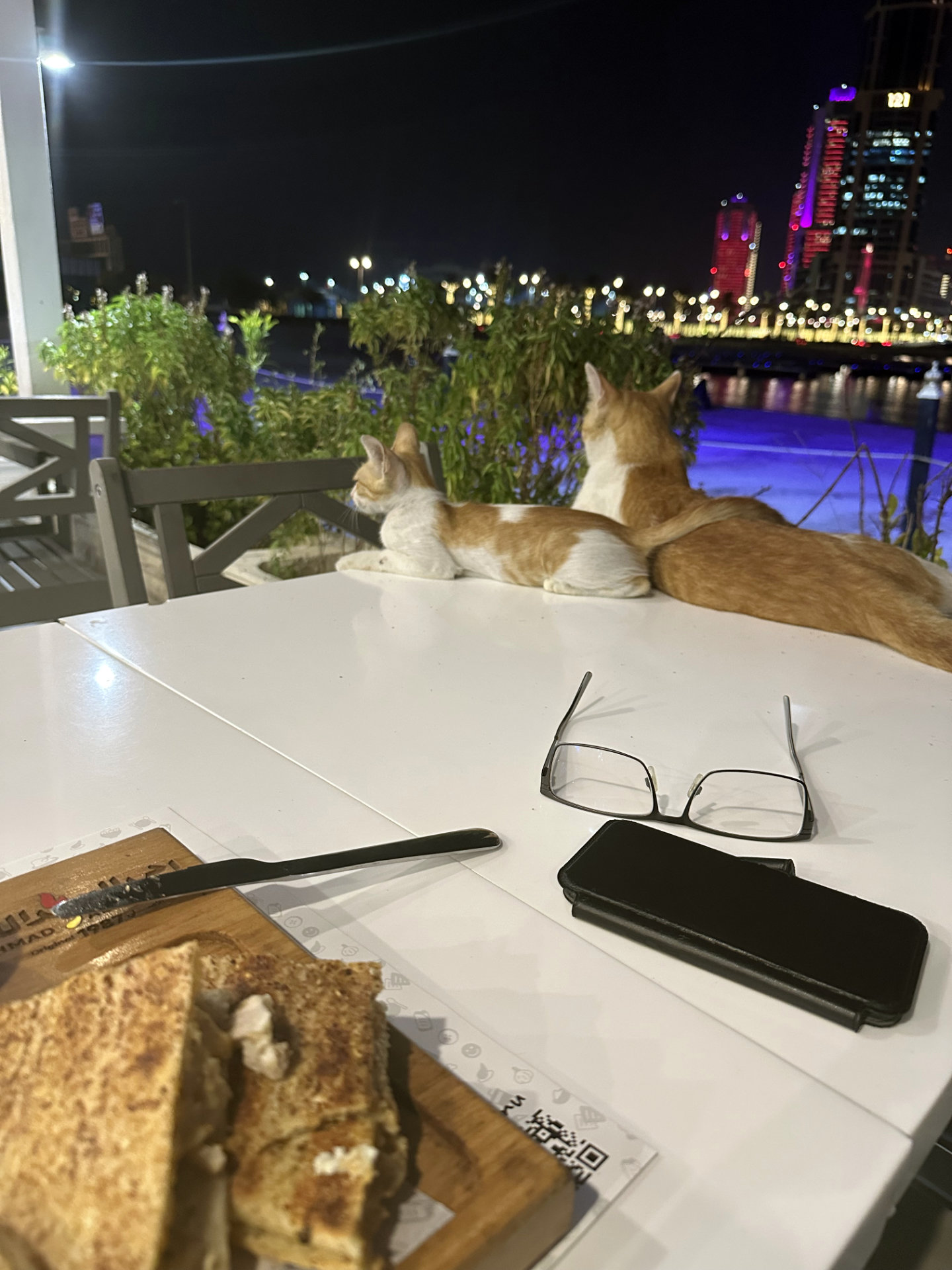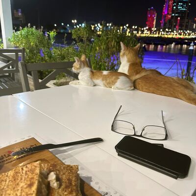 Das Essen muss ich allerdings gegen einen Kater und seinen Sohnemann verteidigen, die nur darauf warteten, dass ich mich vom Ausblick zu lange ablenken lasse. Beide sind allerdings zusammen eine halbe Porition gegenüber meinem daheim und ich habe keine Intention, das zu ändern.
