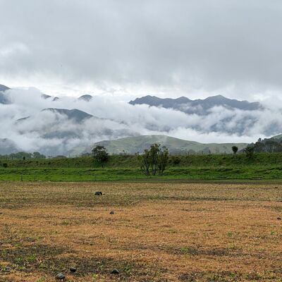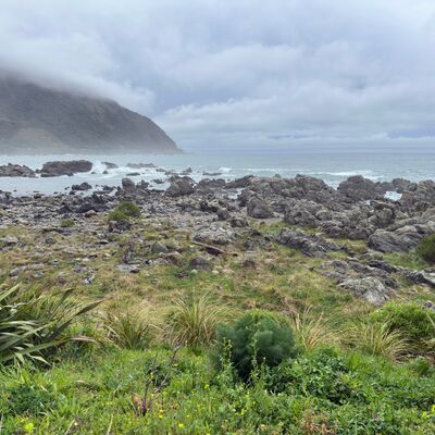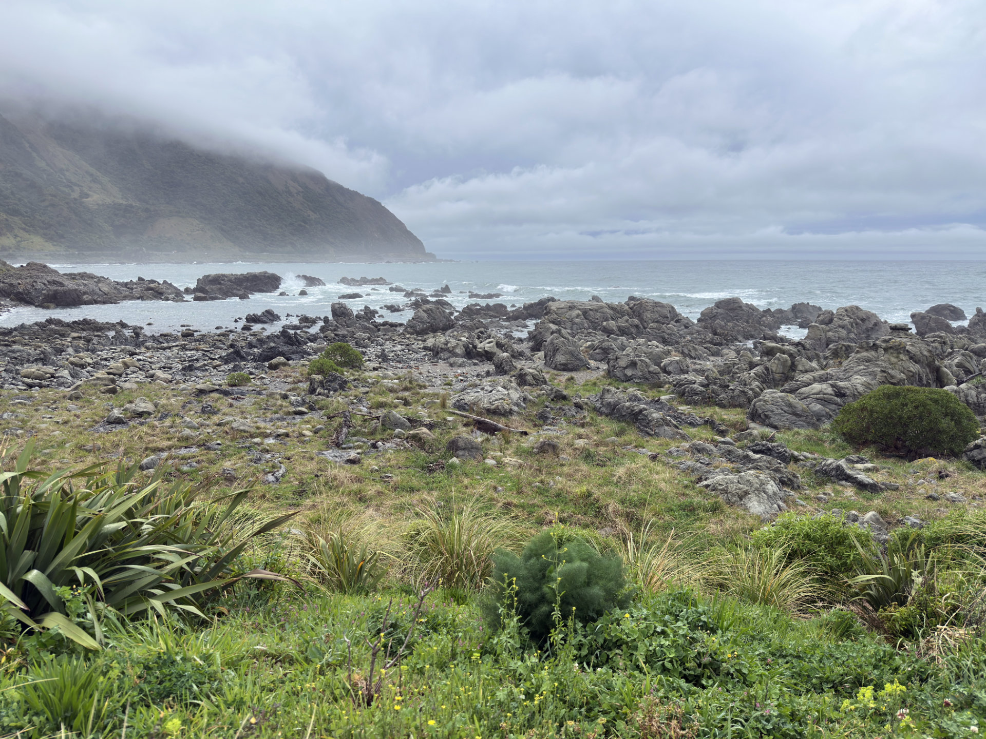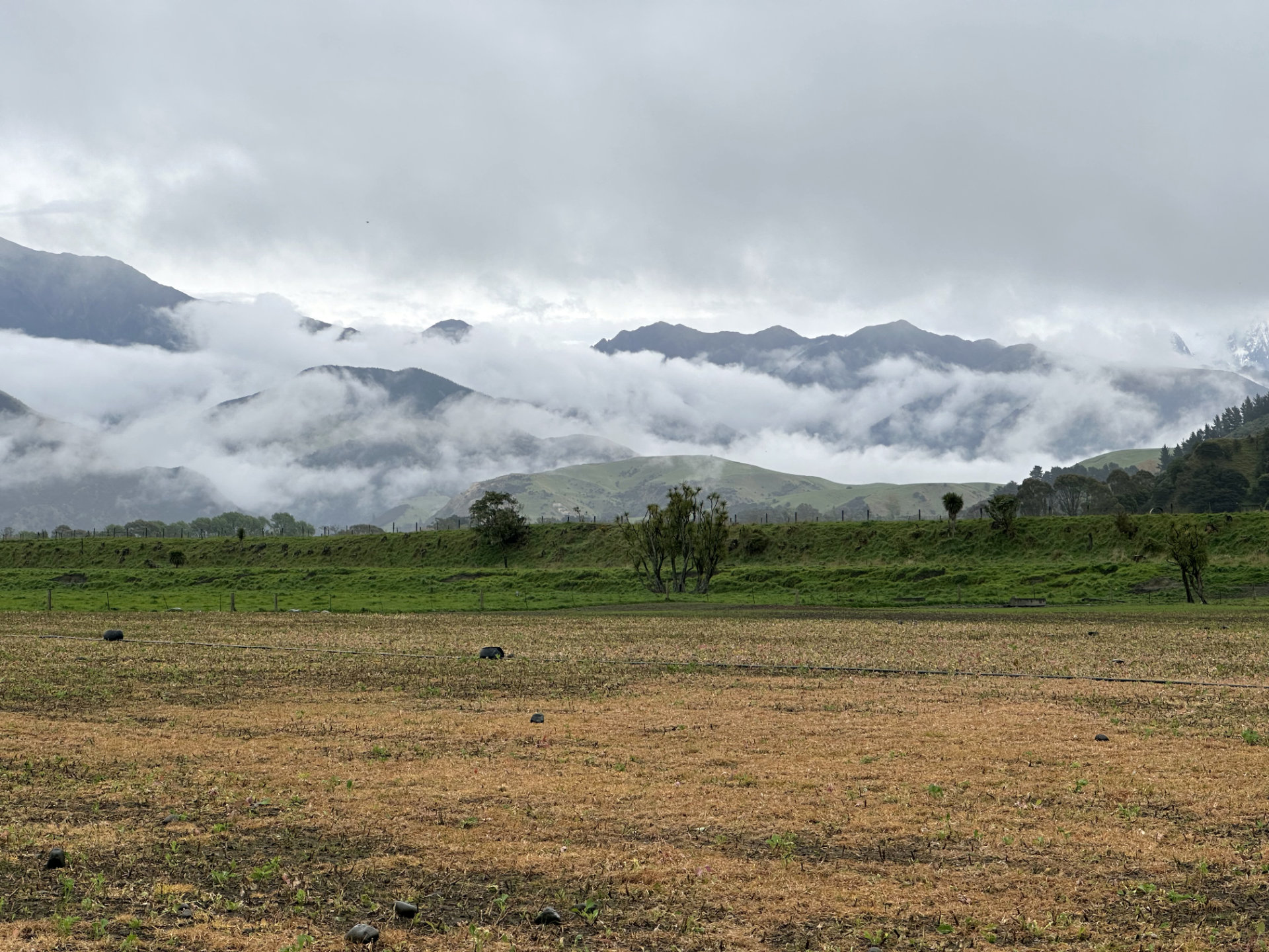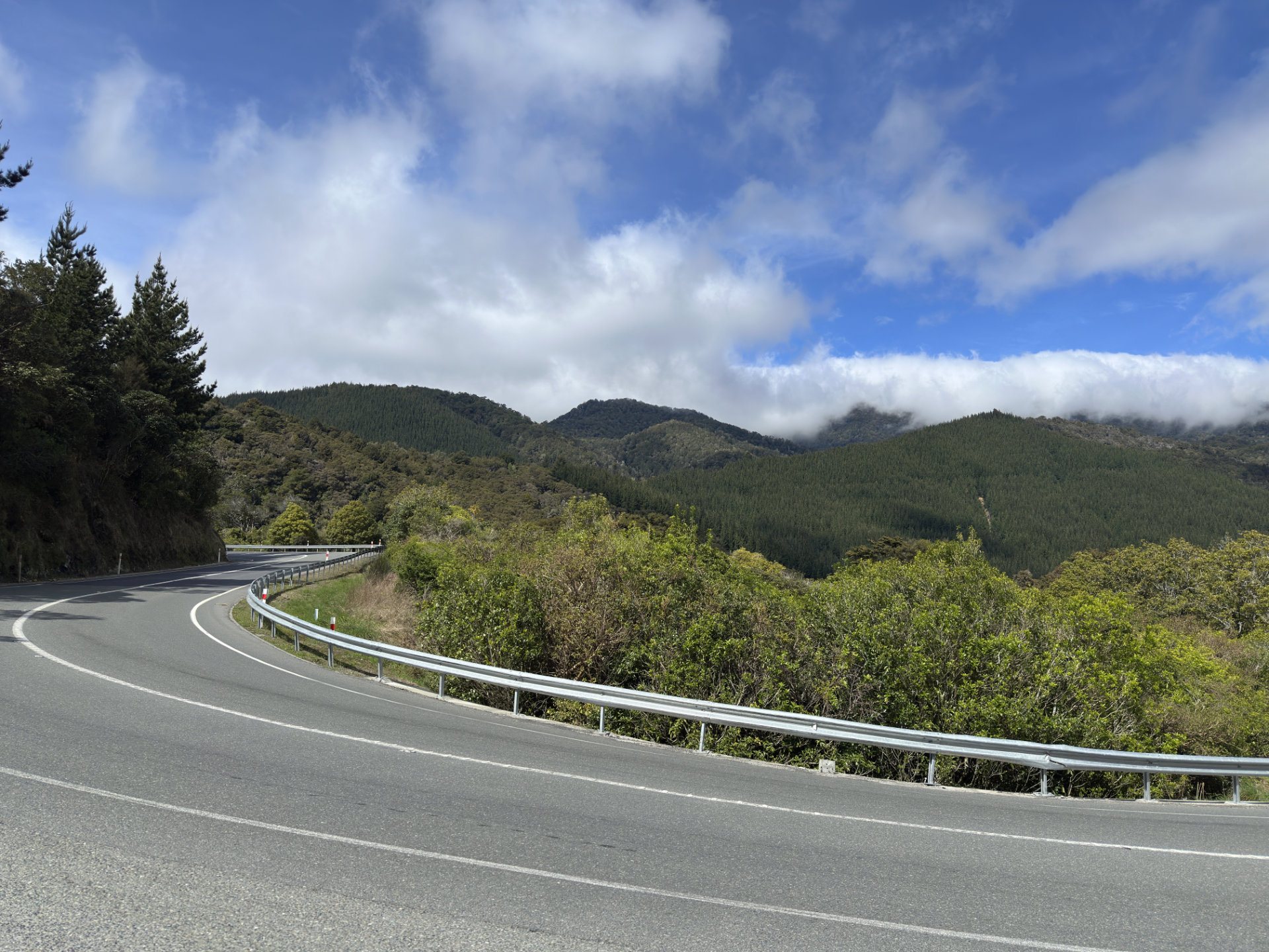 Mit der Zeit wird die Landschaft dann interessanter. Berge tauchen auf und in Kombination mit dem Nebel resp. Wolken sieht das ziemlich wild aus! Wenn dann noch das Meer auch noch auftaucht, dann hat man die erhoffte Neuseeländische Kombination!