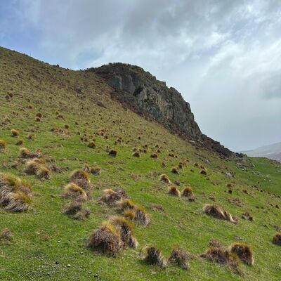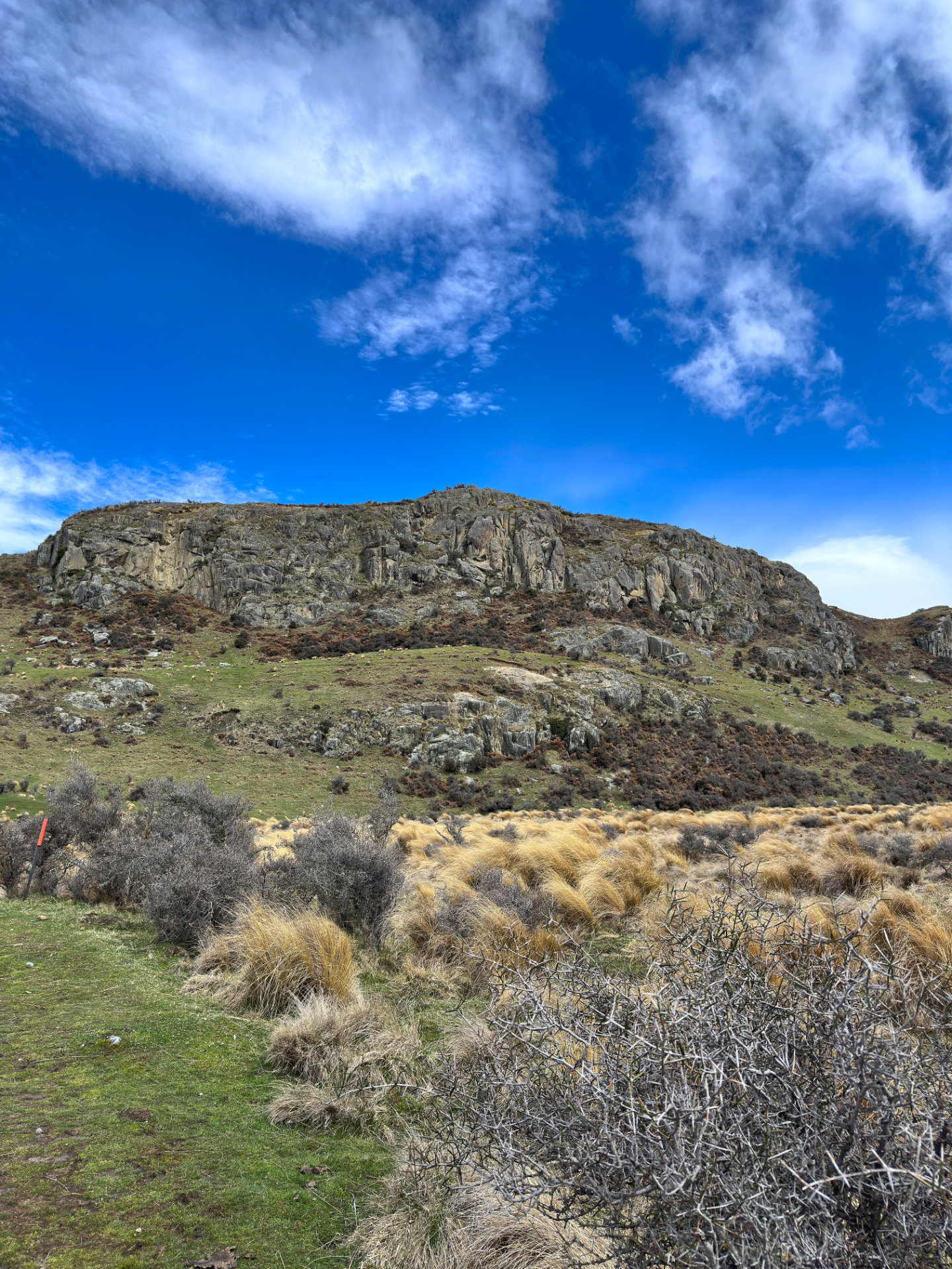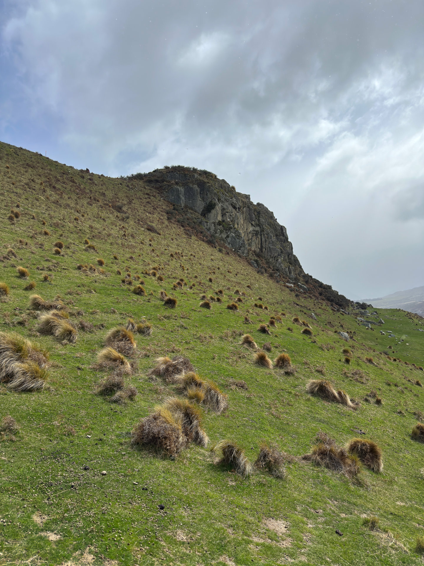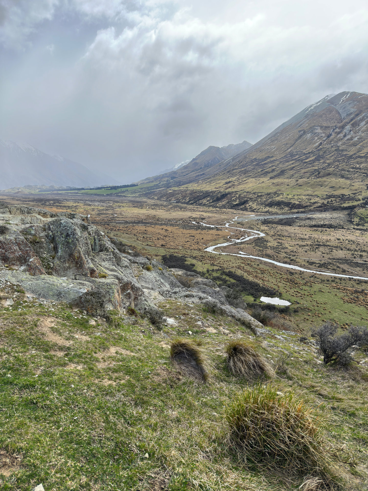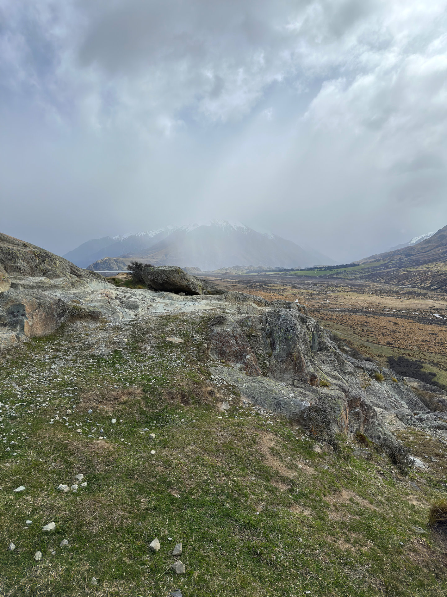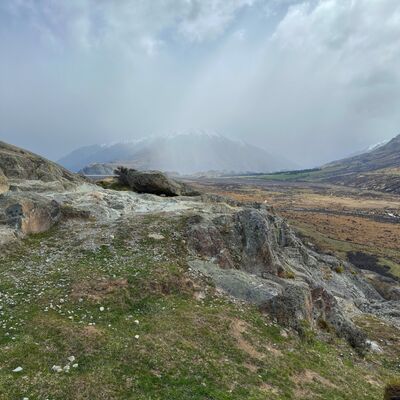 So geht es rund 2.5h bis zum Mount Sunday. Und was soll ich sagen? Es ist so, wie man es aus den Filmen kennt! Natürlich ohne Edoras, da alle Gebäude nach den Drehs wieder komplett abgebaut wurden. Mount Sunday ist als sogenannter Inselberg quasi mitten in einem sehr breiten Tal, umgeben von hohen, teils schneebedeckten Bergen. Die Position führt unweigerlich dazu, dass man sich wie in einem eisig kalten Lüfter fühlt. Am Gipfel oben - etwa 90m Höhenmeter vom Ausgangspunkt - windet es gemäss Messgerät 80 km/h. Das ist schon heftig. Was man auch fallen lässt, würde man auf jeden Fall ganz unten und ganz weit weg finden.