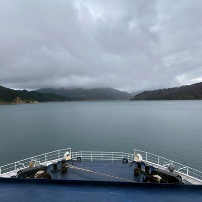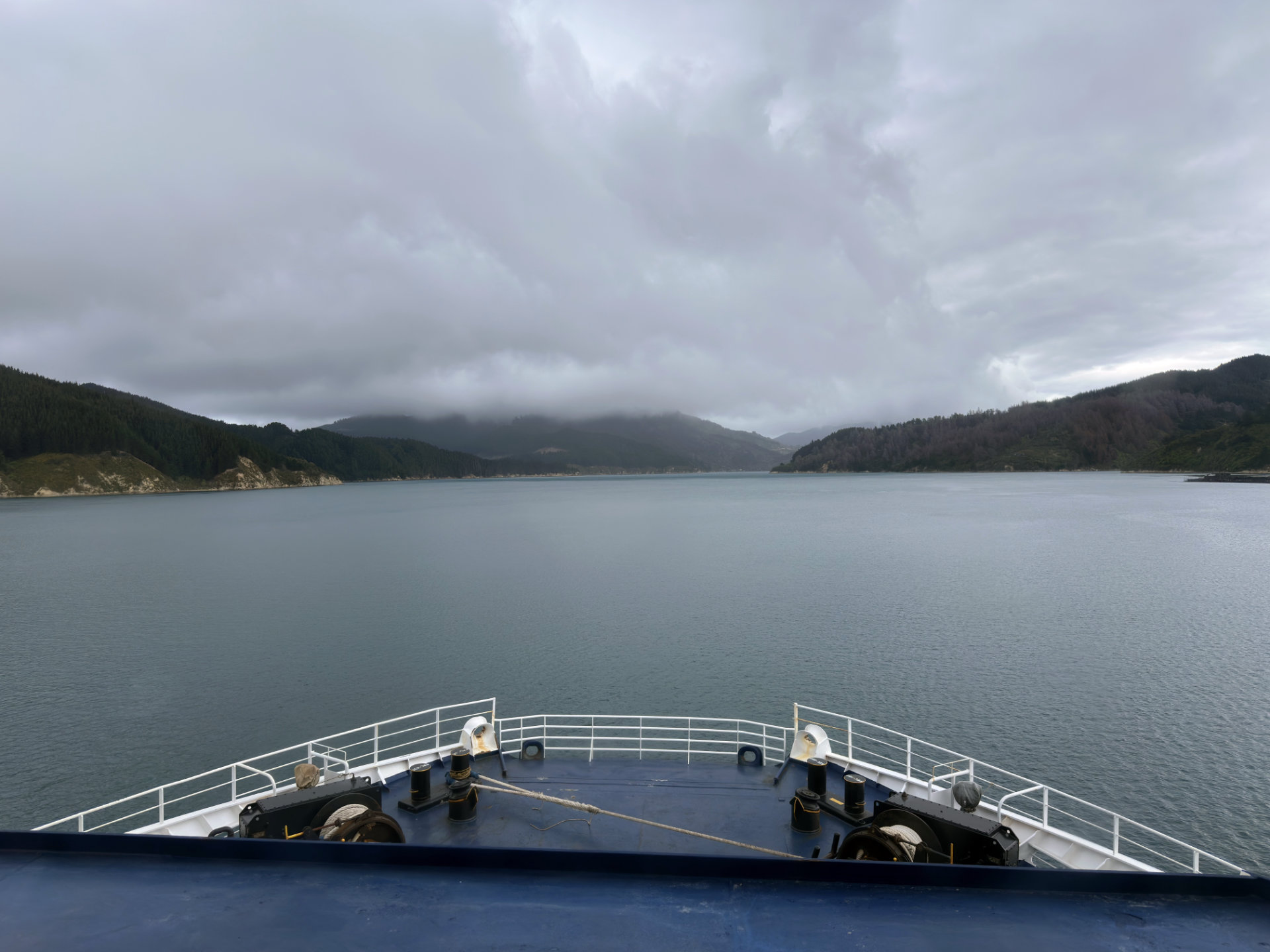 Frühmorgen geht es mit der Fähre von Wellington Richtung Picton los. Die Fahrt dauert rund 3.5 Stunden, ist gemützlich und unspektakular. Hab mir einen Platz in der Queen Charlotte Lounge gegönnt, damit ich besser aus dem Fenster sehe.