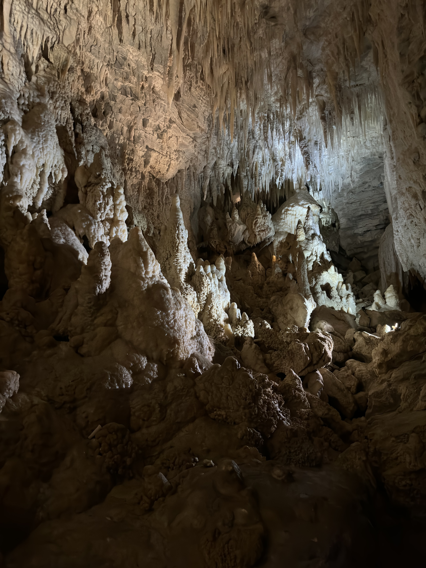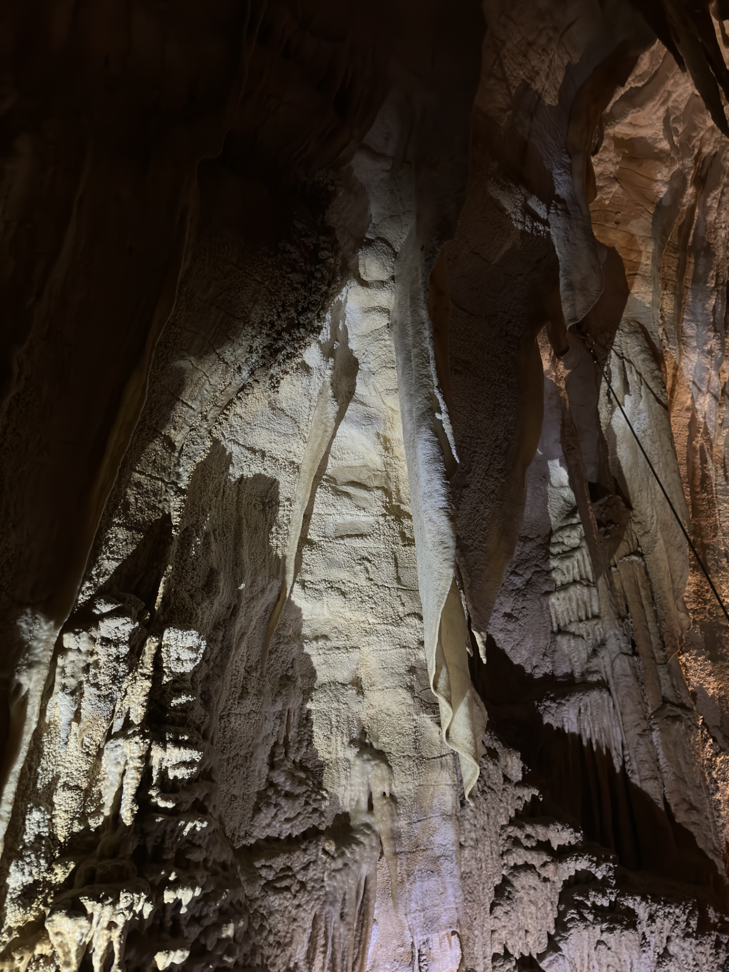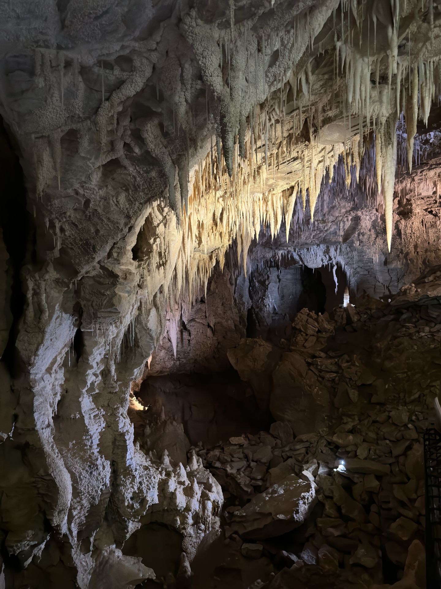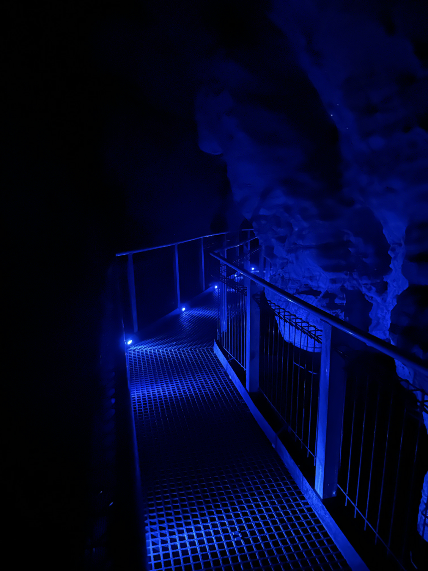 Am Ort angekommen halten einige Crocs passend für die Tour. Nun gut, es geht mehr oder weniger gepflegt und ebenerdigen Weges durch die Höhle. Zuerst gehen wir aber einen spiralförmigen Weg nach unten. Wie tief ist schwer zu sagen. Ich würde jetzt 30 Meter schätzen. Ich mach natürlich ein Foto mit hoher Wahrscheinlichkeit, dass was schief gehen könnte. Tut es erstaunlicherweise nicht und runter gehts!