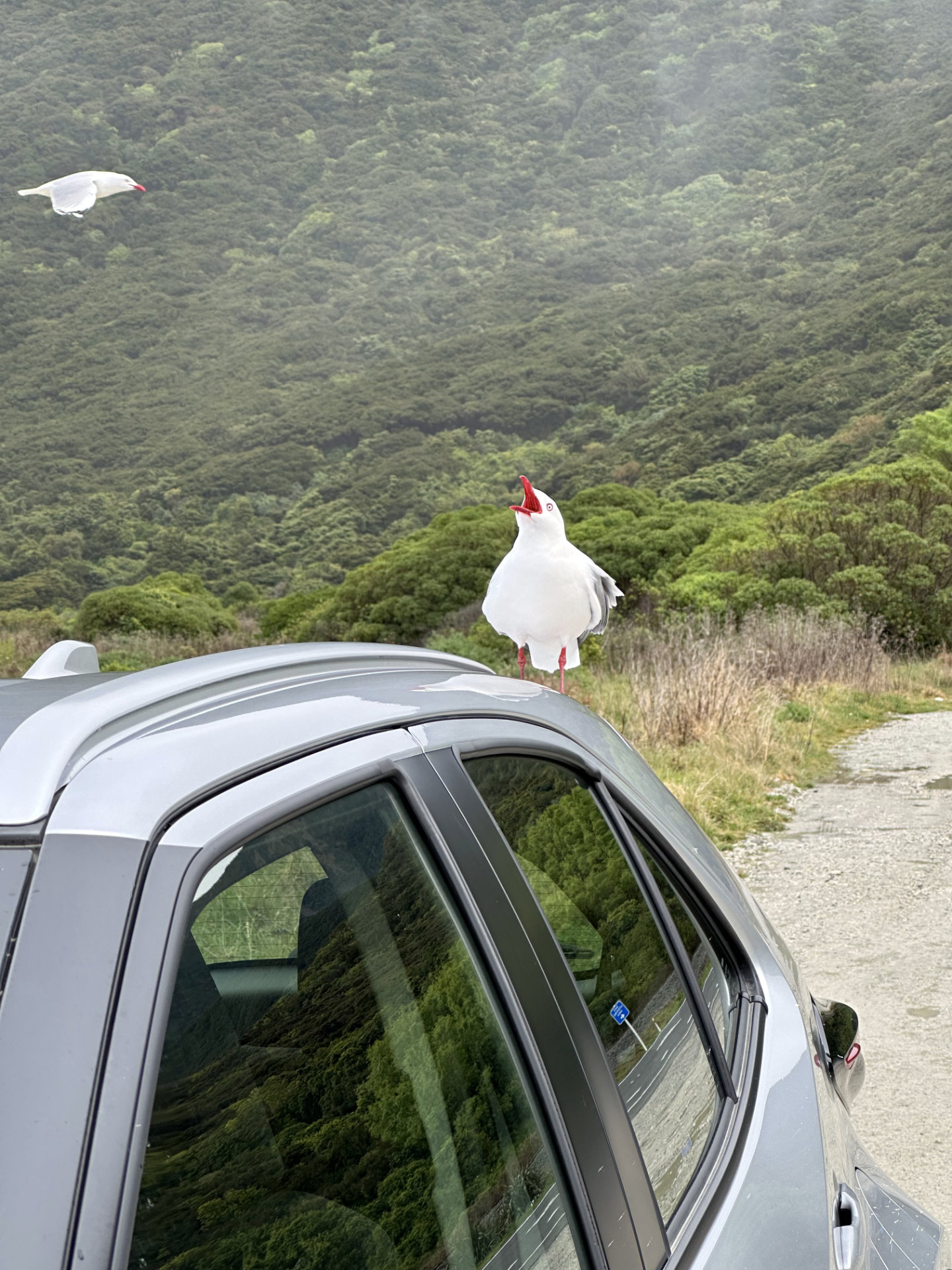 Der Tag beginnt freundlich, das Kratzen im Hals ist es weniger. Hilft nichts, da heute Auto zurückgegeben werden muss. Könnte ich auch erst morgen, aber da morgen früh die Fähre Richtung Südinsel fährt, will ich es nicht drauf ankommen lassen.