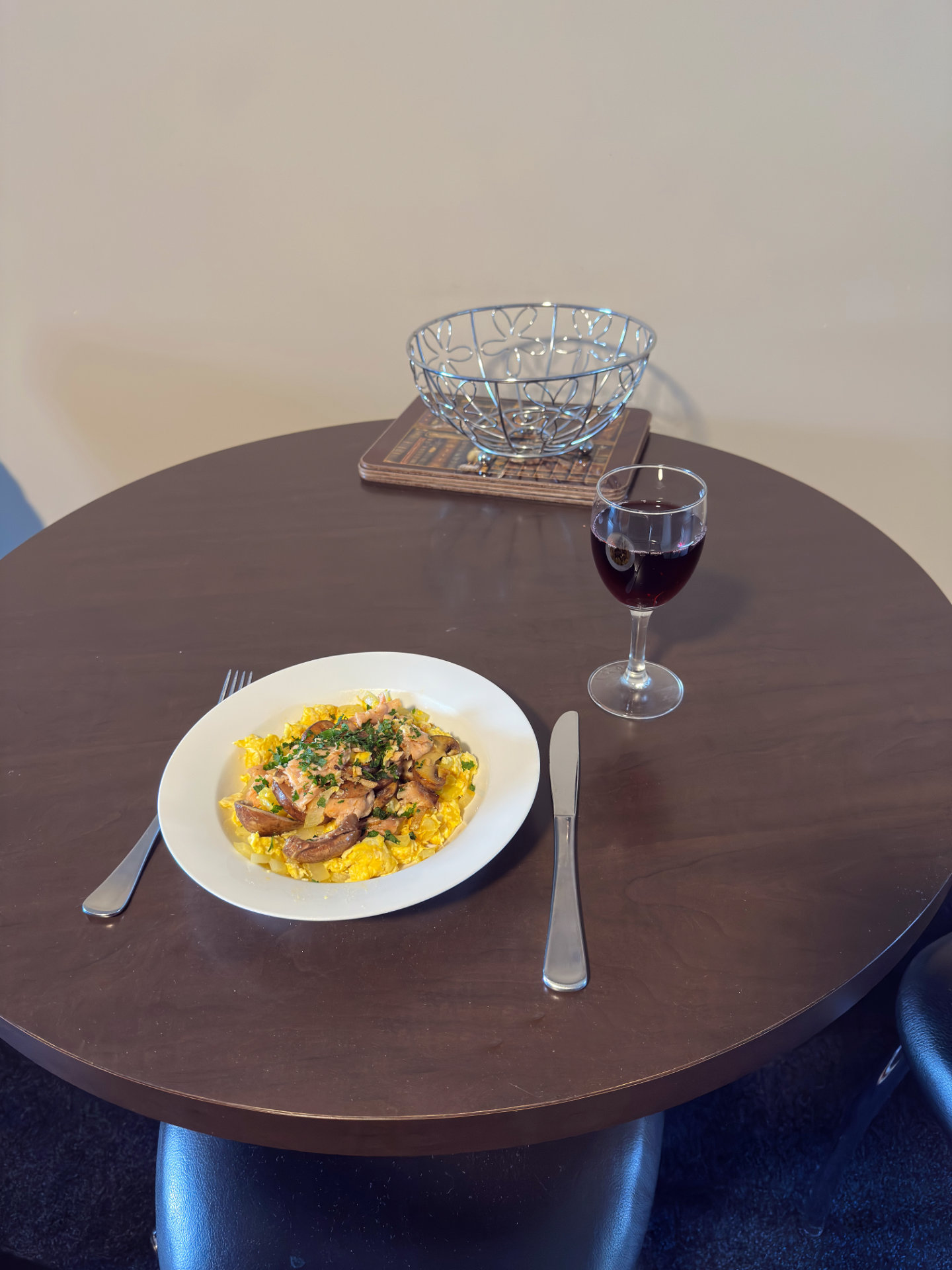 Vom Aussehen ist es gekocht nach dem Motto "Form follows Function", aber die Petersilien und vor allem der Wein sollen davon ablenken.